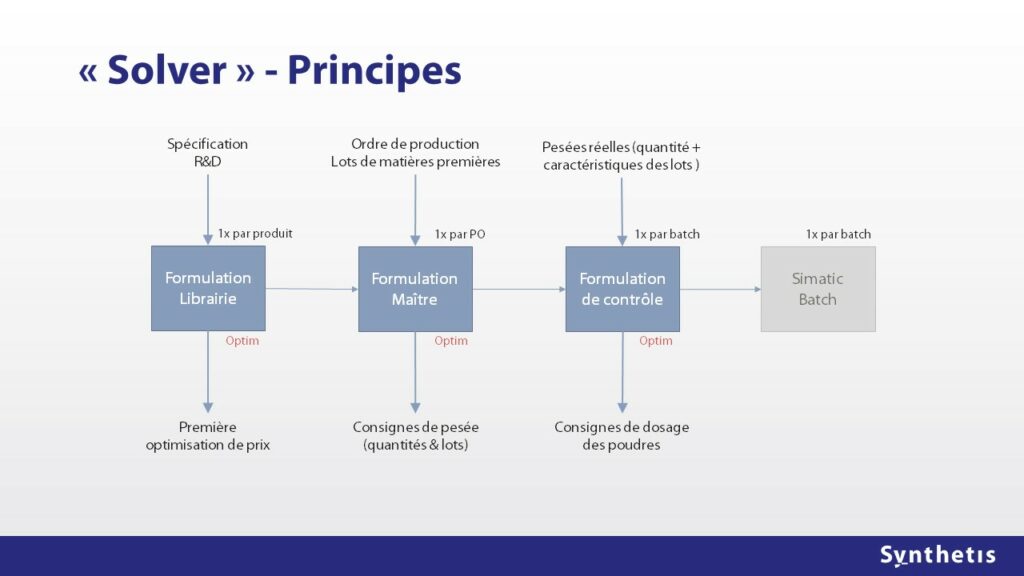Pour atteindre ces objectifs Synthetis a réalisé l’optimisation mathématique des formules en tenant compte de multiples contraintes :
